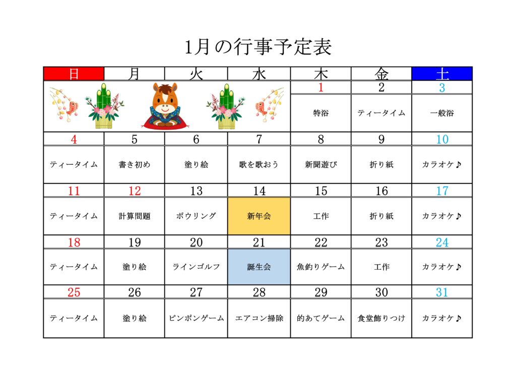 1月 行事予定表